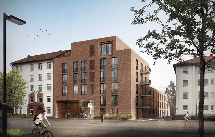 Neubau von 35 Studenten-Appartements mit Tiefgarage in unmittelbarer Nähe zur Universität Kassel 7- bzw. 4- geschossiger Gebäudekomplex in Massiv-Bauweise mit unterzugsfreien Stahlbeton- Flachdecken Abfangung des Gebäudes über der Tiefgarage mit wandartigen Trägern aus Stahlbeton | |