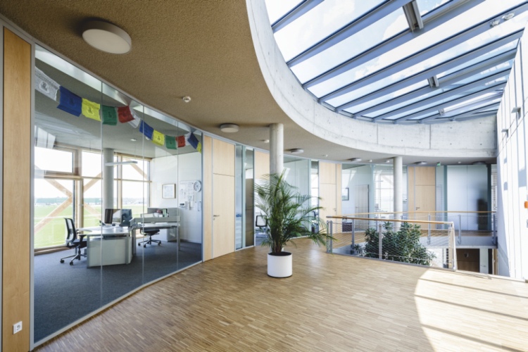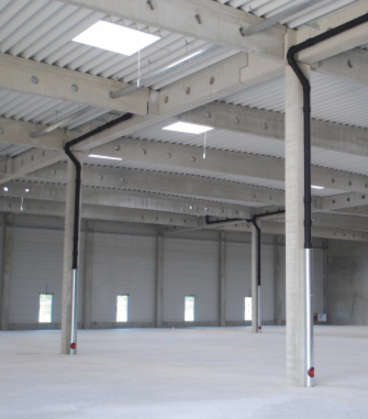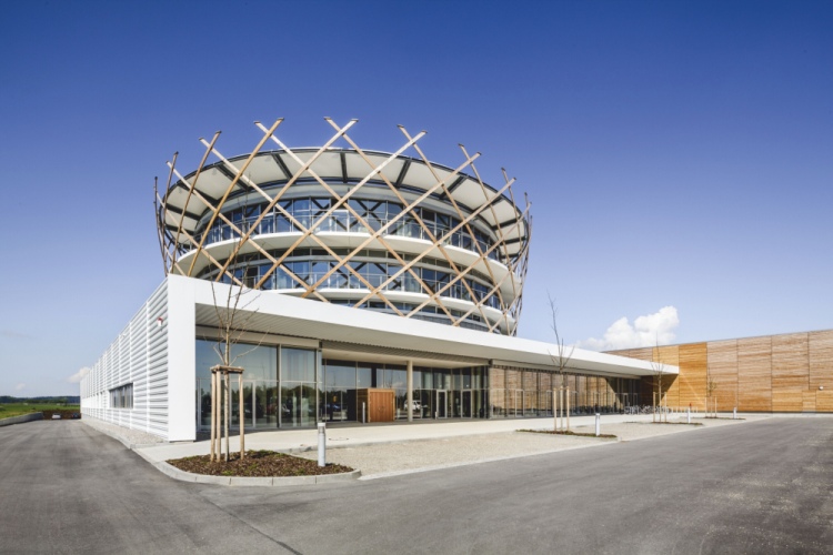 3-geschossiger runder Büroturm mit unterzugsfreien Deckensystemen Abfangung des Büroturms (30 m Durchmesser) durch Stb.-Trägerrost über dem Erdgeschoss Logistikhalle mit 15 m weitgespannten Unterzügen und 10 m langen Spann- beton-Hohllatten Ca. 9 m hohe Lagerhalle mit 23,20 m weit gespannten Spannbeton- Dachbindern |