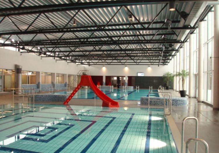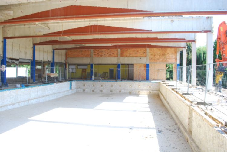 Neu-Strukturierung aller Funktionsbereiche Rückbau der kompletten massiven Dachkonstruktion und Fassade Ersatz durch neue Stahl-Fachwerk- Konstruktion und neue Metall Paneel-Fassade Komplett-Sanierung der im Untergeschoss eingespannten Stahlbeton- Kragstützen sowie des 25 m Sport- Beckens, dem Nicht-Schwimmer- Bereich und der Beckenumgänge |