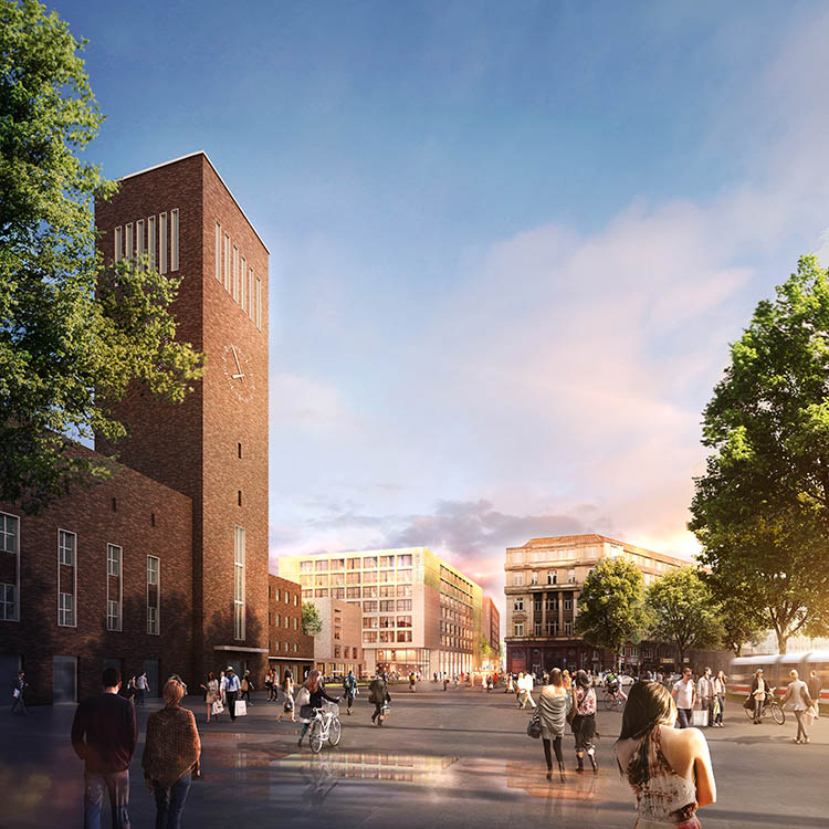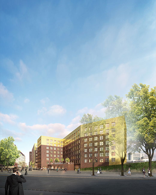 Neubau von 3 Hotels – Hampton by Hilton / ADINA / Premier Inn – auf gemeinsamer Tiefgarage – BGF ca. 39.000m² Ortbeton-Skelettbau – in den Obergeschossen des Hotels in Schottenbauweise Untergeschoss und teilw. Erdgeschoss als WU-Konstruktion | |