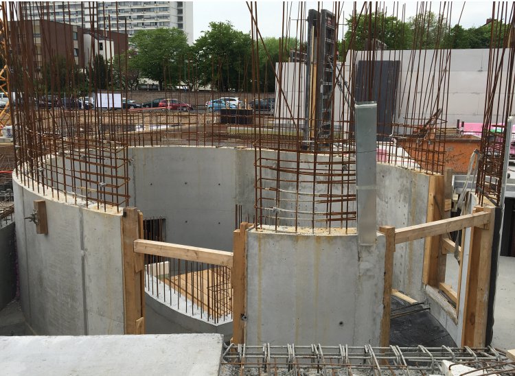 6-geschossige Wohnanlage mit 110 Wohneinheiten und Tiefgarage (110 Stellplätze) Bauweise: Massivbau als Mauerwerks-/Stahlbeton-Konstruktion Deckensysteme überwiegend als unterzugsfreie Flachdecken | |