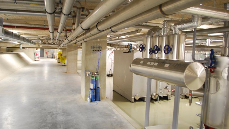 Neubau eines 3- bzw. 4-geschossigen Labor- und Produktionsgebäudes für die Entwicklung klinischer Muster zur Zulassung pharmazeutischer Produkte Kombinierte Stahlbeton-Fertigteil-/Stahl-Konstruktion Überbauung der Produktions- und Reinraumbereiche mit 28 m weit gespannten 2-geschossigen Stahl-Rahmen-Fachwerkträgern Gebäude- und Reinraum-TGA in Ebene der Stahlkonstruktion | |