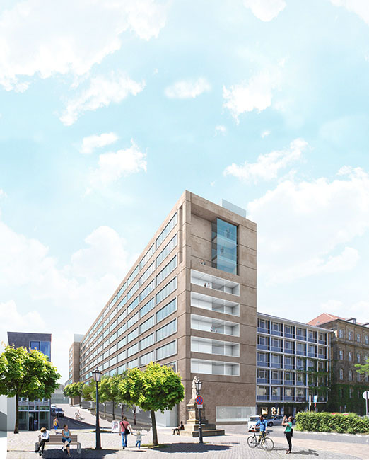 Komplett-Sanierung und Umbau der gesamten Fassaden-Konstruktionen Einbau von 2 neuen Fahrstuhlschächten sowie diverse umfangreiche Umbauten Neues Fluchttreppenhaus im Innenhof | |