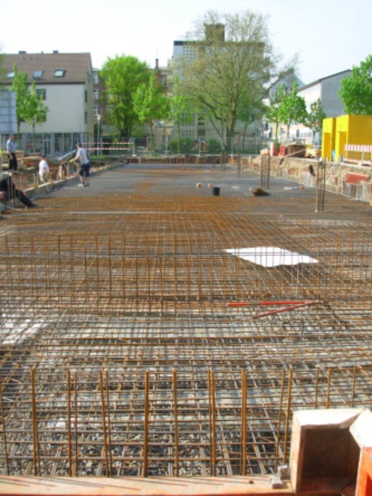 Freitragende Stb.-Bodenplatte auf Trägerrost – gegründet auf Groß- bohrpfählen |